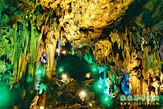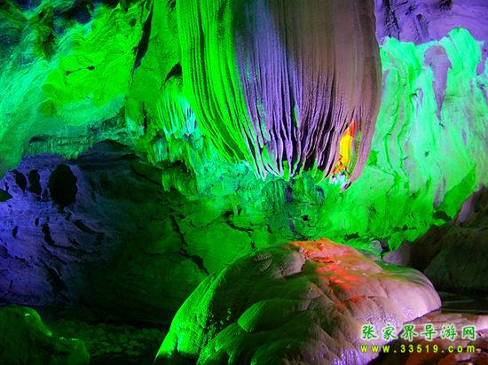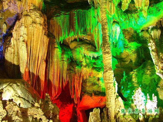 “十里畫廊”里有林海茫茫,古木參天,濃蔭蔽日石呈雪色的“林海雪原”;有聳立的雪山,朵朵雪蓮含苞欲放,一派北國風光的“冰山雪蓮”;有古樹叢生,藤攀葛附,荊棘四布的“西南叢林”;有奇險陡峭,高聳壁立,鬼斧神工的“華山險道”;有溪水潺潺、良田千丘,農(nóng)家隱約,恰似男耕女織的“躬耕桃源”;有景致逼真的鑿橋、蘇堤、三潭映月等構(gòu)成的“西湖小景”;有一座溶巖透明、高大雄偉、連天接地、玉柱晶瑩的華麗殿堂,殿堂里矗立著一群可以演奏出七個音符的石壁的“殿堂琴音”;有壁畫8幅,佛像仙人,百態(tài)千姿,栩栩如生的“敦煌石窟”;……