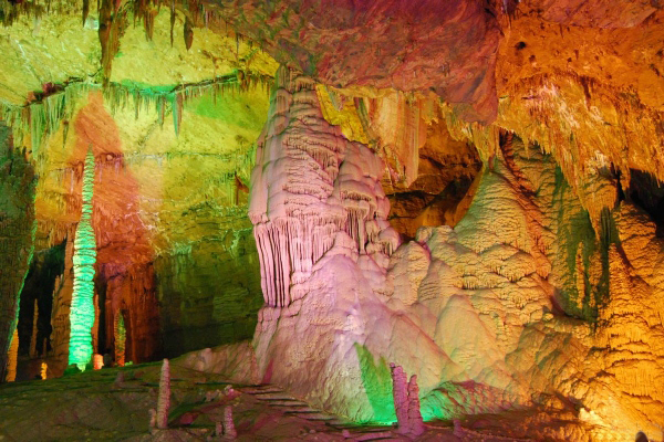 “天堂”精彩紛呈,美不勝收,,有大的景點32處。溶性碳酸鹽巖在漫長的歲月里,變幻出多姿百態(tài),豐韻萬千的眾多造型,為“天堂”造就了美妙絕倫的意境。“南天門”高聳入云,“仙女出浴”百媚千嬌,“御筆天書”維妙維肖,“凌霄殿”虛無縹緲,“玉樹瓊花”繁花似錦,“逍遙宮”如詩如畫,“瑤池”銀波蕩漾,“紫宵宮”三門雄關(guān),“百鳥朝鳳”令人神往,“廣寒宮”寬闊空寂,……“天堂”面積5000多平方米,除了32處大景點,還有浩如星辰,不勝枚數(shù)的眾多小景點。它們一起構(gòu)成了“天堂”那峰回路轉(zhuǎn)、光怪陸離,既寬闊幽遠,又雄偉莊嚴,且瑰麗奇妙的無邊美景。