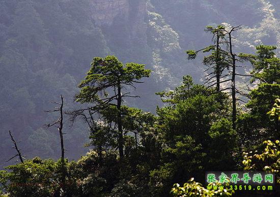 武陵源植物資源十分豐富:在眾多的植物中,武陵松分布最廣,數(shù)量最多,形態(tài)最奇,有“武陵源里三千峰,峰有十萬八千松”之譽(yù)。