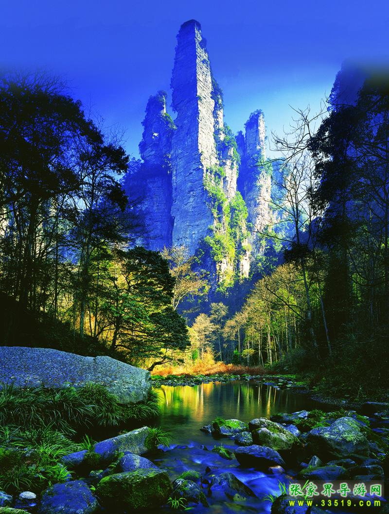 張家界,又名青巖山,面積一百三十平方公里,是中國第一個國家森林公園,它地處武陵山中。張家界地貌奇特,有石峰2000多座,形態(tài)各異,樹木茂盛,森林覆蓋率達(dá)88%,四周山地環(huán)抱,坡陡溝深,氣候暖濕,區(qū)內(nèi)景點(diǎn)眾多,尤以黃獅寨、砂刀溝、金鞭巖、金鞭溪等最為著名。有黃獅寨、金鞭溪、腰子寨、琵琶溪、砂刀溝、后花園、朝天觀七條主要旅游線。