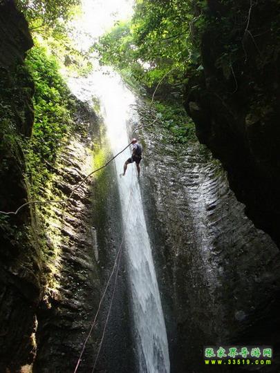 【三株稻、千丘田、靈芝沐浴】來到這里,我們發(fā)現(xiàn),游道的右邊上方,一堵弧形的石壁之上,因為千百年來瀑布漫流的結(jié)果,形成了一個邊沿參差不齊的巖罩,宛若一棵千年靈芝正在沐浴,我們叫它靈芝沐浴。在靈芝沐浴的下方,也就是石壁的底部,隨著瀑布的跌落,形成了一個個環(huán)環(huán)相扣的水潭,我們叫它千丘田。在千丘田的右邊,水潭之中,竟然還生長著三棵水稻,據(jù)說這是王母娘娘專門賜給我們張家界大峽谷的。因為,在這樣陰暗潮濕的峽谷之中,水稻是根本不可能成活的。對水稻生長有興趣的朋友,還可以在游道左邊的石凳上坐下來,休息一下,好好研究研究,這三棵水稻的成活是不是與水稻上方的那個神秘的、若隱若現(xiàn)的溶洞有關(guān)呢?