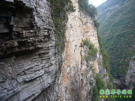 【圓桶絕壁】來到這里,我們朝右邊看去,會驚奇地發(fā)現(xiàn),這里形成了一個天然的圓桶型的絕壁,既不是人工所鑿,也不是瀑布流水所沖刷而成的。同時,整個絕壁上一直是只長草而不長樹。這到底是怎么一回事呢?連地質(zhì)學(xué)家和植物學(xué)家都不能給出準(zhǔn)確的解釋。這便是我們張家界大峽谷五大未解怪謎的第三謎。