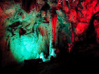 全洞只有一個裂縫狀的入口,由三組洞穴和18個“廳堂”組成,呈不對稱的樹枝狀展開,洞累計(jì)長達(dá)1870米,洞域總面積為84150平方米。洞內(nèi)通道曲折幽奇,怪石叢生。入洞約300米,環(huán)顧四周, 好似“山窮水復(fù)疑無路”,而仔細(xì)探尋,上方竟有尺許小洞,其圓如鏡,只容鉆入,鉆入之后,則是“柳暗花明又一村”,入大洞天,令人咋舌,三號洞內(nèi),那只聞其聲、難見其形的地下飛泉瀑布,聲若虎嘯雷鳴,使人毛骨悚然。行至深處,深潭擋路,一座又窄又滑的天生“小橋”飛架其上,令人望而卻步。二號洞后段則是一個福地洞天。深處的“天窗”猶如一彎朗月高懸,景觀奇異,叫人更加流連忘返。錫巖仙洞的石筍、石林、石柱、石幔琳瑯滿目,千姿百態(tài),鬼斧神工,維紗維肖。“珍珠傘”勝景,美無倫比。
