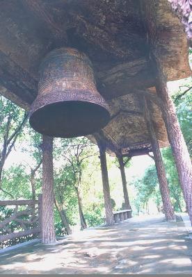 飛來鐘原為君山崇勝寺的古鐘,南宋淳佑五年(公元 1245 年),荊湖安撫制置使孟珙重修崇勝寺時(shí)復(fù)制一鐘,鐘高一丈多,大數(shù)圍,重4000余斤,上有“淳佑五年造”,鐘身上鑄有“皇帝萬歲,國泰民安,風(fēng)調(diào)雨順,五谷豐登”16 個(gè)大字,四方凸出的部分用青銅澆鑄的四條金龍,栩栩如生,形態(tài)逼真。原鐘在1966 年被砸毀,現(xiàn)在的飛來鐘是1979 年由市閥門廠復(fù)制而成,高約2 米,直徑1.2 米,重約 2 噸。鐘身上改鑄著鐘相、楊幺起義的戰(zhàn)斗口號“均貧富,等貴賤”六字,比前者更富有深刻的含義。這口古鐘有段優(yōu)美的傳說。相傳南宋初年,洞庭湖畔數(shù)以十萬計(jì)的農(nóng)民在楊幺率領(lǐng)下,掀起了轟轟烈烈的農(nóng)民起義。相傳一天夜晚,朝廷派兵前來偷襲駐扎在君山的楊幺寨,忽然從天上飛來一口巨鐘,鐘聲陣陣,催醒義軍,奮起抗敵,因此叫飛來鐘。這是人們深切懷念楊幺起義軍,用各種方式來表達(dá)贊美之情。古鐘的傳說便寄托了人們的這種心情。有人據(jù)此認(rèn)為,原來的飛來鐘系楊幺起義軍所鑄的報(bào)警器。