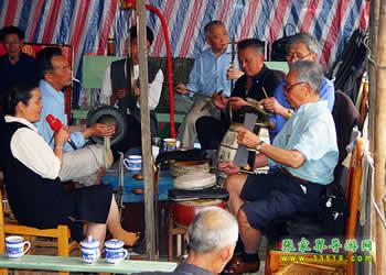 圍鼓(含嗩吶)。又稱打鎦子、打排鼓,是民間紅白會(huì)中不可缺少的樂器。一般7人演奏,樂器有一鼓、一大鑼、一公鑼、兩副鈸、兩嗩吶。其詞曲紅白會(huì)通用,以鼓和嗩吶上系紅、白布為分別標(biāo)記(結(jié)婚不打“四字鈸”曲)。史傳的圍鼓詞有《撩子》、《火鋪》等,《撩子》分《一二三》、《閃翅》、《堆羅漢》、《反落花》等十章,《火鋪》也分《三槍》、《四進(jìn)門》、《八哥洗澡》、《蓮魚吐絲》等十章,嗩吶詞有《八十正宮》調(diào)等。在農(nóng)村,圍鼓是最普及的樂器,每逢紅白喜事都有圍鼓和嗩吶表演。