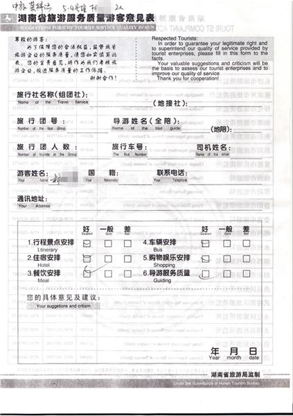 2011年5月4日林小姐一行2人旅游質(zhì)量反饋