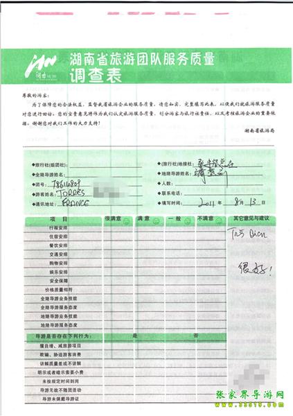 2011年8月13日TORRES先生一行4人旅游質(zhì)量反饋:很好!