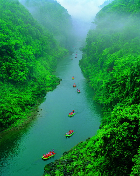 7點準時等在萊頓大酒店門口,猛洞河漂流180元/人,漂流的車一般會來接參加漂流的客人的,上了車已經(jīng)有好幾位游客,然后車子又去接了幾位,7:30人接齊,離開張家界去猛洞河,車程約1個半個小時,漂流約2個半小時。在萊頓大酒店的那個晚上張家界半夜打雷下雨,我們想今天水很大,漂流會很刺激。到了那邊才知道上游建了水壩調節(jié)水量搞平均主義,所以漂流的驚險度一般般了,后來去鳳凰公路上比較顛簸,我戲稱可以將車當船補足漂流的感覺,呵呵。不過瀑布因此壯觀不少,漂流沿途至少見到有七八條瀑布,非常漂亮。